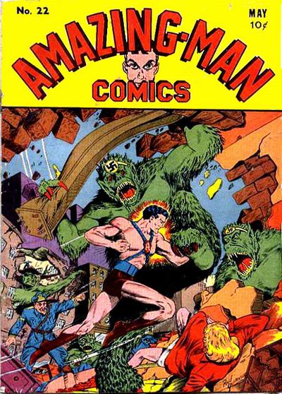 AMAZING-MAN COMICS #22 - MAY 1941 - CENTAUR COMICS - $8,000.00 - Hitler in story. Classic Nazi monster WW2 cover