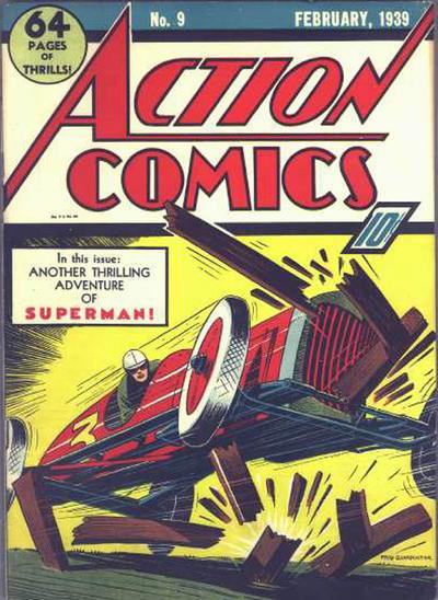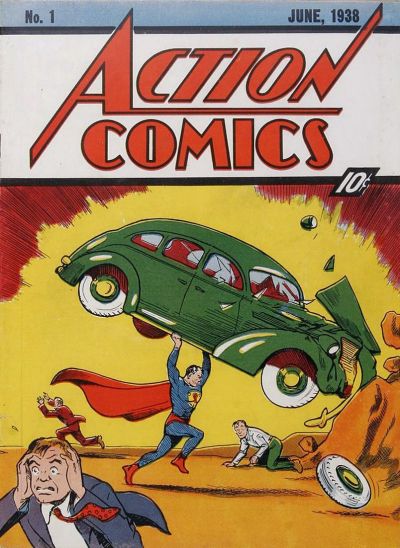 1st superhero comic ever published. 1st appearance Superman. 1st superhero cover. Comic started the Golden Age of superhero genre and the boom of comic sales.